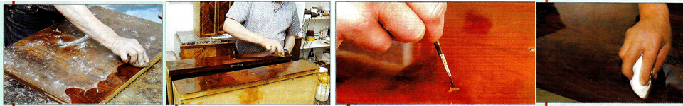 Le remplissage consiste a obtenir un fond lisse et poli. Pour cela nous bouchons les pores du bois, à l’aide d’un tampon imbibé d’alcool et de poudre de pierre ponce saupoudrée à la surface.